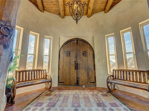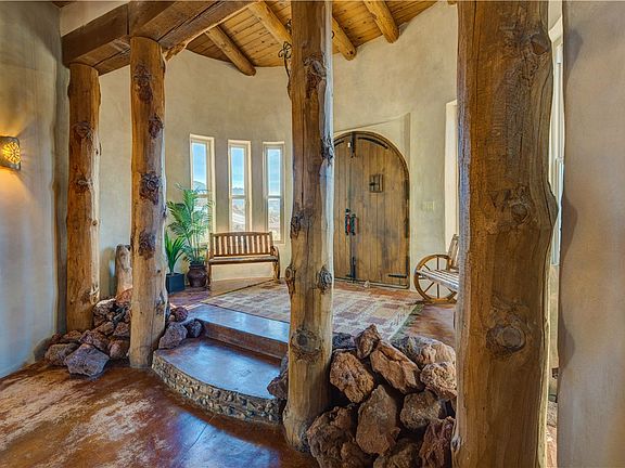 There are homes, and then there are places that simply cannot be replicated. Set across 40 private acres at 17445 S. La Cienega Ranch Road, this extraordinary retreat is surrounded by Arizona's high desert and tucked into the boulder outcroppings of the most desirable area of Santa Fe Ranch. The setting offers a rare sense of peace and a deep connection to the land. From the moment you arrive, the landscape takes your breath away. Massive boulder formations rise naturally from the terrain, towering Saguaros, Ocotillo and Joshua trees dot the property, and panoramic views stretch in every direction. With an adjacent 1,280 acres of state land and wide-open skies, the sense of space and solitude is something you simply cannot recreate. The custom home is as remarkable as its surroundings. Built from 8-inch e-crete blocks shaped by hand, the thick walls provide impressive energy efficiency with high R-value insulation and a solid, grounded presence built to last. Inside, soaring ceilings with tongue and groove detail and exposed vigas add warmth and character, while oversized windows and doors frame desert views from nearly every angle. Each of the three bedrooms is en-suite, offering privacy and comfort for family or guests. Custom features include a handcrafted wood spiral staircase, sculptural boulder-inspired bathtub, and natural clay non-toxic plaster walls, creating a space that feels artistic and organic. Designed for true off-grid living with modern comfort, the property includes 5,000 gallons of water storage with delivery service, solar system with battery backups, and a 10KW generator that activates automatically. High-speed internet, security cameras, a tankless water heater, and maintained roads all the way to the property. Yes, FedEx and UPS even deliver here! Outdoor living is just as impressive with a large patio, BBQ connected to the homes propane, and an upper deck offering sweeping mountain and desert views. An additional building pad is ready for a future casita or guest house, along with multiple storage sheds. The land is level and usable, ideal for horses or a large garage. This is not just a home. It is a sanctuary, a statement, and a rare opportunity to own something truly special. Most of the furnishings have been thoughtfully selected for the space and will convey with the home. Ask your agent for a detailed list. Owner/Agent.