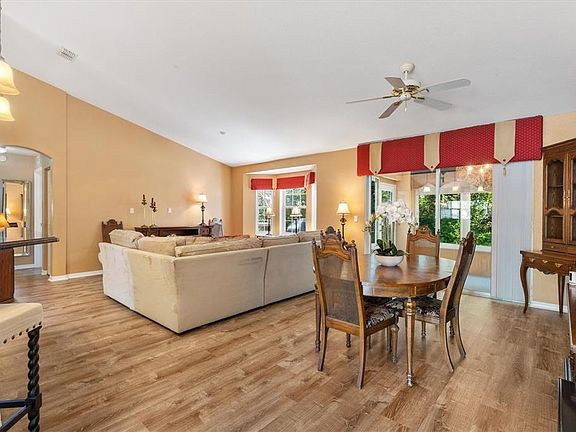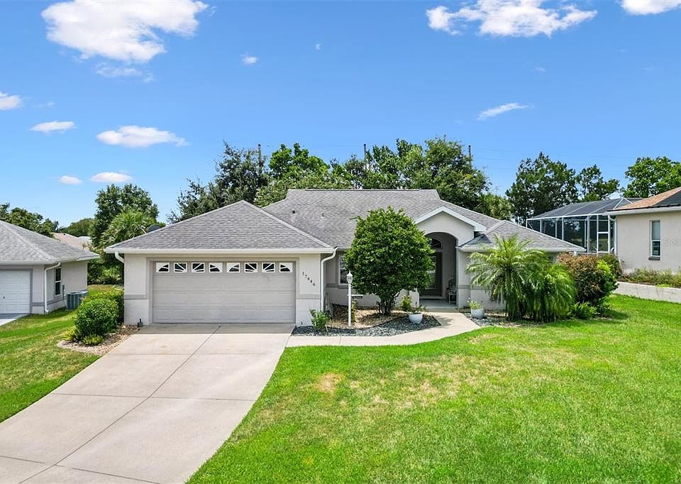 ROOF installed in 2015, HVAC system 2017, Water heater 2019! Welcome to your forever home in the Beautiful 55+ Gated Golf Community of STONECREST, with all the amenities, adjacent to THE VILLAGES, FLORIDA! 3 Bedroom, 2 Bath CONCRETE/BLOCK/STUCCO home offers privacy, space, and an inviting atmosphere that makes it feel like home the moment you walk through the door. Vaulted ceilings create an airy, open feel in the main living areas, which feature LAMINATE Flooring throughout the Kitchen, Living, and Dining spaces. The Kitchen is a chef’s delight, complete with GRANITE countertops, Stainless Steel appliances, pendant lighting over the Breakfast Bar, and custom-built Cabinetry with convenient pull-out shelving. The thoughtfully designed split floor plan ensures comfort and privacy, with a spacious Primary suite that boasts dual closets, an updated walk-in shower, dual vanities, and a dressing table. Sliding glass doors provide direct access to the ENCLOSED LANAI, offering a peaceful retreat where you can relax and unwind. One of the additional bedrooms is currently set up as an office. Step outside to an oversized TILED patio with a PERGOLA, perfect for entertaining or enjoying your morning coffee in your tranquil backyard setting. Additional features include tile in one bathroom, carpet in two bedrooms, and durable indoor/outdoor carpet in the lanai. With a ROOF installed in 2015, HVAC system 2017, Water heater 2019, this home is priced to sell. Stonecrest offers an array of amenities from golf and pools to clubs and community events making every day feel like a vacation. Don’t miss your chance to experience it all. Schedule your private showing today and make this exceptional home yours.