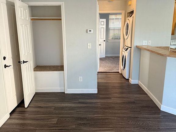 Large private patioHigh ceilingsIn-unit washer and dryerAir conditioningForced heatDedicated on-demand water heaterVinyl and carpet flooring