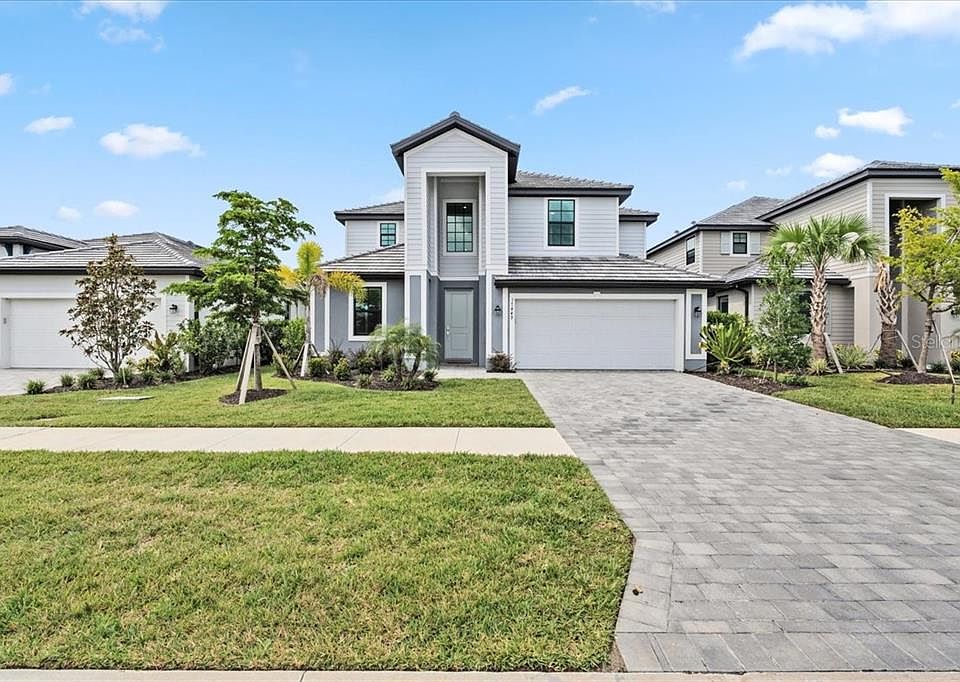 This “MONTE CARLO” model was built in 2024 and is basically BRAND NEW! This home has 5 bedrooms + HUGE BONUS ROOM, 3 full baths, 3 car tandem garage, and a heated saltwater pool & spa— all overlooking a quiet preserve. This home has a premier location— near the community amenities! As you step inside the grand foyer, you will immediately notice the soaring ceilings, neutral colors, BRAND NEW LUXURY VINYL PLANK FLOORS (throughout the entire first floor), and tons of natural light flowing into the home. To the left of the foyer you will see the formal living room. Just a few steps further is your formal dining room with a brand new chandelier and archway into the kitchen. As you walk past the dining room, the home opens up to the kitchen, optional breakfast area by the sliders, and spacious family room with brand new chandelier. The open-concept kitchen has generous storage & work space and includes white cabinets, quartz countertops, stainless appliances, closet pantry, backsplash, and an island with plenty of seating. Just past the family room is a full bathroom and a guest bedroom. Upstairs you will find the roomy master bedroom with two walk-in closets. The master bathroom has an enormous vanity with dual sinks, soaker tub, walk-in shower, linen closet, & water closet. Upstairs there are 3 additional guest bedrooms, another full bathroom with shower/tub combo, and a MASSIVE bonus room w/French doors. Downstairs near the staircase is entrance to the generous laundry room and entrance to the 3 car tandem garage. The sliders near the kitchen lead to your very own heated saltwater pool & spa with a private view of the preserve. Lakespur at Wellen Park offers gated, resort-style living with amenities such as a heated pool with cabanas & plenty of loungers, outdoor kitchen and gathering area, fire pit lounge, playground, event lawn, fenced dog park, and a 12 ft wide paved walking trail, perfect for morning strolls or evening bike rides. There is even a dedicated Lifestyle Director who plans regular community events such as food truck nights, live music, cornhole tournaments, and poolside DJs. This home is not located in a flood zone so no need for flood insurance. The HOA fees in this neighborhood are only $317 per month which pays for the community gate, amenities, yard & landscape maintenance, cable, and internet. The $2597 annual CDD fee is included in the taxes shown in this listing. You can also GOLF CART TO DOWNTOWN WELLEN PARK from this neighborhood! In Downtown Wellen Park you’ll find shopping, dining, kayak rentals, splash pad, playground, Sunday farmer’s market, tons of events, and the Atlanta Braves Spring Training Stadium, “Cool Today Park”. This neighborhood is also located near Sarasota County’s A-rated schools! Schedule your showing today and start living the Wellen Park lifestyle!