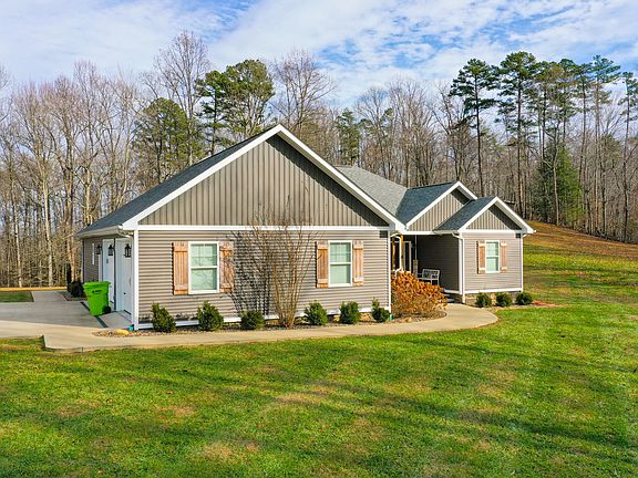 Private country living just minutes from town. Built in 2020, this approximately 1,800 sq ft home sits on 3.7 acres and offers a blend of modern construction and peaceful surroundings while remaining only about 10 minutes from town amenities. The home features 3 bedrooms and 2 full bathrooms with an open layout. The kitchen includes a large breakfast island, ample cabinet space, and stainless steel appliances, opening into the main living and dining areas with vaulted ceilings and recessed lighting. The primary bedroom offers a spacious layout with an attached full bathroom and a walk in closet. Additional bedrooms provide flexible space for a variety of uses. The home also includes a 2-car garage and a concrete dog kennel. Outside, the property offers a mix of open yard space and wooded privacy, with a covered back porch ideal for outdoor use. The long driveway and surrounding acreage provide separation from neighboring properties. Newer construction homes, with acreage and within minutes from town don't hit the market often, so don't miss your chance!