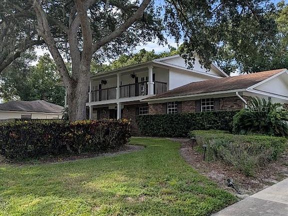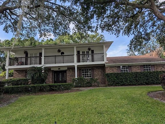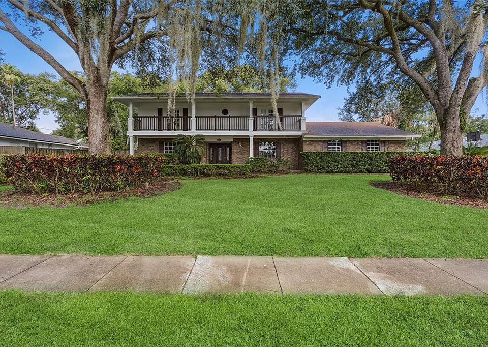 Classic Colonial Brick Home on highly desired E Adama Drive across from Lake Maitland! 4 bedrooms, 4 Baths, 2 fireplaces-one in Primary bedroom! Full 2nd floor balcony porch with French doors! Terrific home for entertaining! Formal Dining room across from Formal Living room connected by large foyer! Family room/Library with built in shelves on both ends with wood burning fireplace! French door lead to huge covered screened room with summer kitchen. Sip morning coffee while overlooking inground pool! Relax on your huge front porch while watching the squirrels play in the mature trees serenaded by a variety of musical birds! Two car garage with long driveway