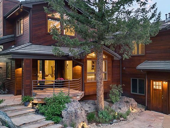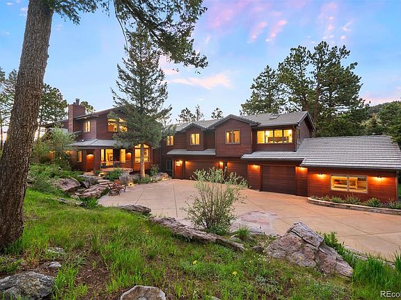 Well thought out in every detail, this flawless rustic mountain contemporary is fully remodeled and backs to Genesee open space. Huge panes of glass showcase beautiful mountain vistas including a peek at snowcapped Mt. Blue Sky. Majestic rock outcroppings create supreme privacy/quiet while breath-taking vistas are enjoyed from multiple outdoor living areas and the masterfully planned interior. Sky-lit flagstone entry opens to vaulted great room which sets the tone for this multi-faceted treasure of a home with wood and flagstone floors, stacked stone fireplace, exposed beams and patio access. The remodeled kitchen keeps things cool and views fully exposed featuring multiple drawer and beverage refrigeration, freezer and icemaker. Induction cooktop/range, 2nd sink, bar seating, quartz center island plus leathered granite tops, alder cabinetry and stone backsplash create rustic elegance. Breakfast nook has see-thru gas fireplace to dining room and access to partially covered view deck with pipe railing and 2 awnings - a lovely spot to relax and soak in the spectacular surroundings. Upstairs primary suite is a treehouse retreat complete with peninsular fireplace, an adjoining room that is ideal as a nursery, den or office, walk-in closet with organizers and 5-piece sky-lit travertine bath with walk-in shower, double vanities and jetted tub. 2 en-suite bedrooms, laundry room, and lovely vaulted bonus room with built-ins and fireplace complete the upper level. Resistance pool/exercise area has 3/4 bath and doubles as a gym. Lower level features kitchenette, family room with fireplace, 2 bedrooms, full bath, laundry closet and storage. Alder doors/trim thru-out. "in all the world there is only one Genesee": 12+ miles of hiking trails, 1,200+ acres of open space, 3 pools, 4 tennis courts, gym, security patrol, underground utilities, community water/sanitation, award-winning fire mitigation initiatives plus trash pick-up with recycling and HOA sponsored events yearly.
