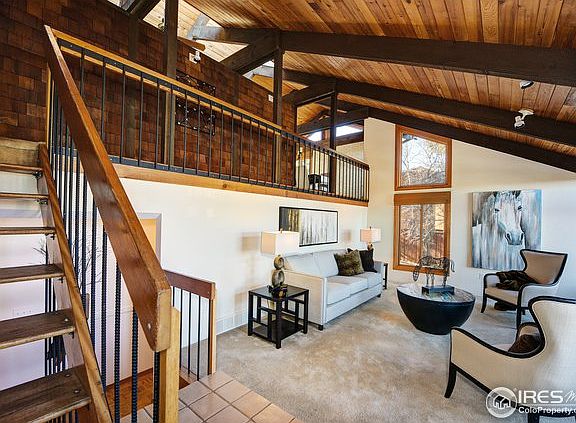 This original McStain home with a large and private yard has been well maintained and has a spectacular panoramic view of the Boulder Valley, Flatirons, and an unobstructed view of Viele Lake. Great location across from Harlow Platts Park and adjacent to South Boulder Rec Center with tennis courts and disc golf. Close to Fairview High School, Southern Hills Middle School, and Mesa Elementary. Vaulted ceilings and wood stove encircled with tin plates originating from the bar ceiling of the Boulderado. Perennial flowers surrounding the house. On the bus route (snow is always plowed), yet private, located up from the street and surrounded by trees. Three-minute drive to Table Mesa shopping, restaurants and supermarket.