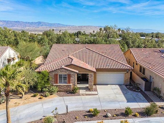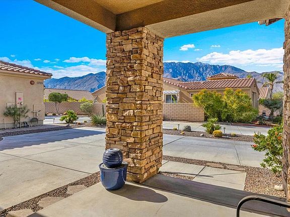 PALM SPRINGS with Solar! Located in the prestigious gated Four Seasons 55+ Community with low HOA's, this rare Canyon 3 model offers 2,825 Sq Ft., 3 bdrms/2.5 baths, with open floor plan. The modern SOLAR SYSTEM, installed in 2021, will save you $$ in electrical bills for many years to come! A true gem, it shows beautifully with high ceilings and tiled floors throughout. It includes a gourmet chef's kitchen with a huge center island, walk-in pantry, a breakfast area & bar-top seating, plus a formal dining room. Sun filled living spaces include a formal living room and a separate family room, and the entire house is newly painted throughout. The Primary suite with high ceilings features a gas fireplace, 2 enormous walk-in closets, a spacious bath with dual sinks, a soaking tub, separate walk-in shower and private water closet. The additional 2 bed rooms or Den/office are located at the opposite end including a Jack & Jill bathroom with dual sinks and shower/Tub. There's also an additional powder room for guests. A separate laundry room leads to the attached garage for easy house entry. Your private rear grounds offer mountain views from your large covered patio with mature drought-resistant landscaping including automated watering. Positioned in a cul-de-sac, there's ample room for 6 cars in the driveway for guests, and just a short distance to the impressive club house. The fully staffed lodge is where friends & neighbors gather to celebrate everyday life with abundant social activities. Amenities include a fitness center plus an aerobics room, computer lab, ballroom, game rm & library. Community amenities include multiple pools & spas, Pickleball & tennis courts, bocce ball, handball, and walking trails. Minutes away is the very heart of Palm Springs packed with world class restaurants and shopping, the Agua Caliente Casino and so much more.