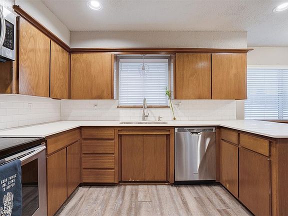 Step into this remodeled SE Edmond home that has been masterfully renovated! This home offers a refined and inviting living experience. The living room is open to the formal dining room that could be used as a second living/play/office area. Living room has a cozy fireplace and built-in bookcase with storage. Classy and updated kitchen with breakfast bar, coffee bar area, pantry, stainless steel appliances, ample cabinetry and work space. Main suite has built-in desk area, updated shower, walk-in closet, and built-in headboard. Hall bathroom has been totally updated. Front bedroom has shelving making it a great office, if needed. Huge, fenced in backyard and nice covered patio. Don't miss the opportunity to make this renovated haven your home. Seller offering buyer a $5000 update allowance or $5000 in closing costs with acceptable offer. Schedule a showing today to experience the perfect blend of modern living and classic charm.