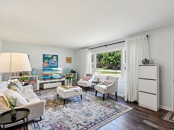 Cozy wood-burning fireplaceFinished basementAttached two-car garageFresh neutral color paletteWet barTree-lined backyardAbundant storage