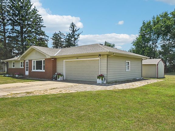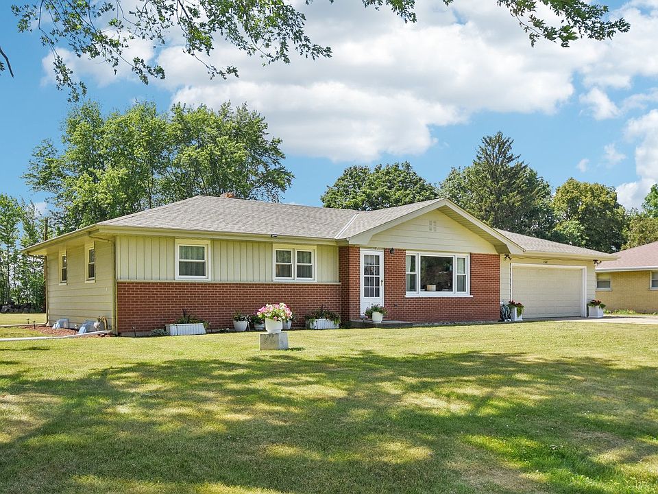 Bright & Airy Updated Ranch in Aurora! Welcome to this beautifully updated 3-bedroom, 1.5-bath ranch home where modern updates meet everyday comfort. Inside, luxury vinyl plank flooring installed in 2022 flows throughout the entire home, paired with a fresh, neutral color palette that enhances the bright, open feel. The spacious, open-concept kitchen and dining area features sleek granite countertops added in 2022 and a cozy wood-burning fireplace that creates a warm, inviting atmosphere. Just off the kitchen, a convenient half bath adds functionality, and the large 3-season room offers versatile space for relaxing, entertaining, or enjoying quiet mornings with a cup of coffee. All three bedrooms are generously sized, and the full bathroom was completely remodeled in 2022 with stylish, modern finishes. The finished basement extends your living space with a large rec room, a second wood-burning fireplace, a wet bar, a sizable laundry area, and abundant storage. This home has been thoughtfully maintained and extensively updated for peace of mind. The A/C was replaced in 2021, and in 2022, the roof, both bathrooms, all flooring, granite countertops, well pump, water tank, water softener, water filter, and all main floor lighting were upgraded. A new garage door opener was installed in 2023, and in 2025, the basement plumbing was redone and three new distribution tanks were added to the septic system. The windows throughout the main floor are approximately six years old. Outside, enjoy a tree-lined backyard with a spacious deck ideal for summer gatherings or peaceful evenings, along with a storage shed for added convenience. An attached two-car garage completes the property. Located just minutes from US-30, shopping, dining, and entertainment, this move-in-ready home blends style, comfort, and functionality. Don't miss your chance-schedule your showing today!