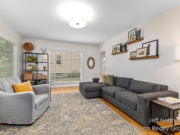 Relaxing, tree-lined street near restaurants, shopping, Eastown, Breton Village, and EGR. Adorable, immaculately maintained 4-bedroom, 2.5-bath home with thoughtful updates. Features hardwood floors, renovated kitchen with soapstone counters, new appliances, and a breakfast nook with storage benches. Relax in the four-season sunroom with French doors to a private fenced-in backyard, dining room, and living room with wood burning fireplace. New windows (2011), furnace/AC (2013), roof/chimney (2021). Upstairs you will find a renovated full bath with polished nickel fixtures, and new carpet in the primary bedroom. Laundry is located in the basement with ample storage space. Walking distance to Mulick Park and splash pad, Grand Rapids Christian Evergreen Campus, and Mulick Park Elementary.