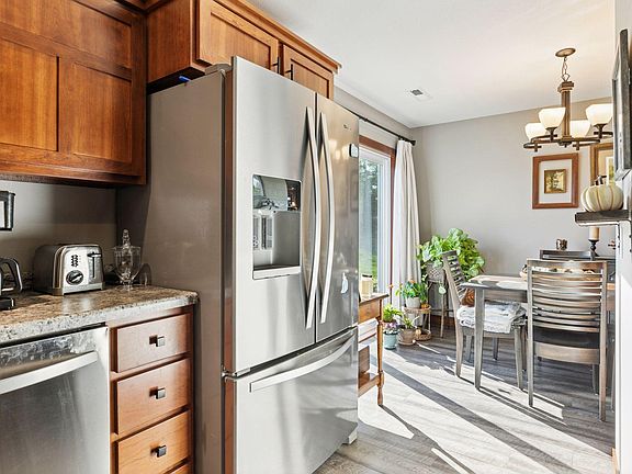 Why rent when you can own? This charming 2-bedroom home offers convenient one-level living just steps from the local grocer. Inside, you'll find custom-stained cabinetry, durable vinyl plank flooring throughout, solid panel wood doors, mission-style trim, and quality Andersen windows that bring in natural light. Enjoy a low-maintenance lifestyle! Lawn care and driveway snow removal are taken care of by the association, giving you more time to relax and enjoy your home.