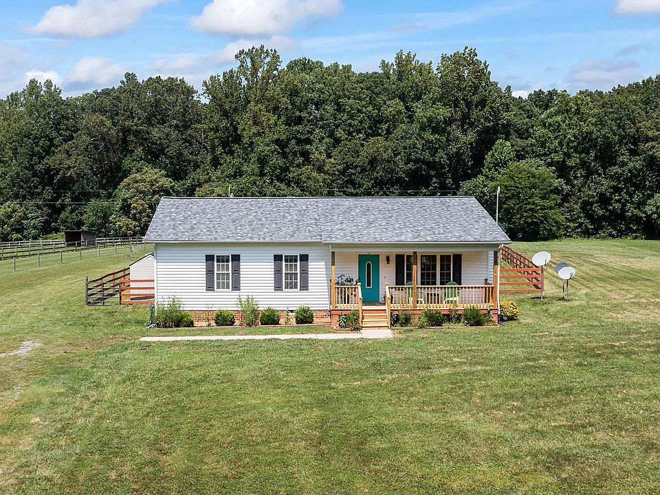 Welcome to this charming one-level home on 2 open acres. With 1260 square feet of comfortable living space, this home offers an inviting atmosphere with vaulted ceilings that create an airy and spacious ambiance. Step inside to discover a thoughtfully designed interior featuring a seamless flow between the living areas. The open concept design allows for easy interaction between the living room, dining area, and kitchen, making it ideal for both relaxation and entertaining. Enjoy the beauty of nature from the comfort of your own home –part of the rear yard is fenced, providing a space for children or pets to play. There is a firepit in the back to enjoy making smores or relaxing on a chilly evening. A deck offers an inviting spot for outdoor gatherings and enjoying the scenic views. Unwind on the front porch and relish in the tranquility of the surroundings. Whether you're looking for a peaceful escape from the bustle of everyday life or a comfortable family dwelling, this one-level home offers just that. New roof and front porch. Firefly internet now available Regenerate