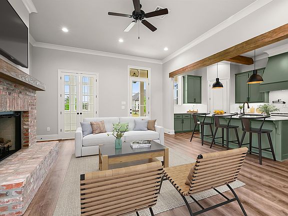 Juliette A plan by Level Homes READY NOW in Rouzan!! Enter this New Orleans cottage style home off the bricked steps onto the lovely covered front porch with hanging gas lantern. You will enter into the open living, dining and kitchen. The office is located off of the living room and lets in tons of natural light. The gourmet kitchen is adorned with exposed beams and features custom painted cabinets with under cabinet lighting and 5" hardware pulls, stainless appliances including a WOLF cooktop, pot filler, Carrara Blanco quartz on all surfaces, white beveled hexagon tile backsplash, large center island with 30" single basin farm sink and two over hanging pendant lights, a “back” kitchen / bar area with a built in wine cooler and wine rack and a pocket door for full enclosure and a corner walk in pantry. This is a split floor plan with the Master bedroom located at the rear of the home and beds two and three on the opposite side with a shared “jack and jill” bath. The master bedroom is spacious with French doors that lead you into a spa like bath with a HUGE 6 foot soaking tub, separate custom tiled shower with glass enclosure, dual vanities, framed mirrors and a large walk in master closet! Spacious laundry room with a built in utility sink, base cabinet with granite top, a linen closet and double wall upper cabinets. The mudroom off the garage entry has a coat closet and a built in mud bench. Engineered hard wood flooring throughout all living areas and bedrooms and tile in the wet areas, no carpet! Spacious covered side porch/courtyard with plumbing, gas and drain for a future outdoor kitchen, that is perfect for entertaining!! Yard is professionally landscaped and fully sodded. Other lots/plans available. Come experience all that Rouzan has to offer with nearby shopping, dining, walking, outdoor fitness, swimming pool, fitness, community clubhouse & so much more!
