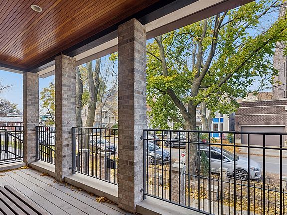 Welcome to this freshly updated stunning single-family home! Located in the prime Roscoe Village /Lakeview/Southport Corridor area. This solid brick and limestone residence features custom craftsmanship, abundant natural light, and an exceptional open floor plan designed for modern living and entertaining. Step inside to radiant heated floors, 9ft+ ceilings and solid American Cherry hardwood throughout, creating a warm and inviting atmosphere. The bright and spacious living room flows into the chef's kitchen and open concept dining area, anchored by a limestone fireplace and oversized French doors leading to a large private patio. This amazing kitchen is equipped with a Viking range, SubZero refrigerator and freezer, Dacor warming drawer, Black Pearl granite leathered countertops, solid mahogany cabinetry, and a generous pantry.The second floor offers a luxurious primary suite with dramatic 12' cathedral ceilings, skylights, a private balcony, and a spa-style bath featuring dual vanities, jet tub, and separate shower. Two additional well-sized bedrooms and a full bath complete this level. The third floor provides a flexible multi-use space-ideal for an office, family room, exercise room, guest suite, or playroom-featuring skylights, high-end wood ceilings, and its own balcony with city views.The fully finished lower level includes a large recreation/media room, gym or play area, fourth bedroom, slate-tiled hallway, full bath, and a cedar sauna. Ample storage is available throughout the home. Outdoor living includes a welcoming front porch, three balconies, a brick paver patio, and a winding exterior staircase connecting each level-offering numerous options for enjoying your own private urban retreat. A rare find is the finished living area above the 2-car garage, complete with wet bar and full bathroom, providing excellent flexibility for guests, an office, studio, or extended-stay accommodations. Home is completely wired for Internet, Media, Speakers, & Alarm System. Just minutes from the Paulina Brown Line, top-rated neighborhood schools, and the shopping, dining, and amenities of Southport Corridor and Roscoe Village, this home offers exceptional space, quality finishes, and outstanding walkability in one of Chicago's most desirable North Side locations.