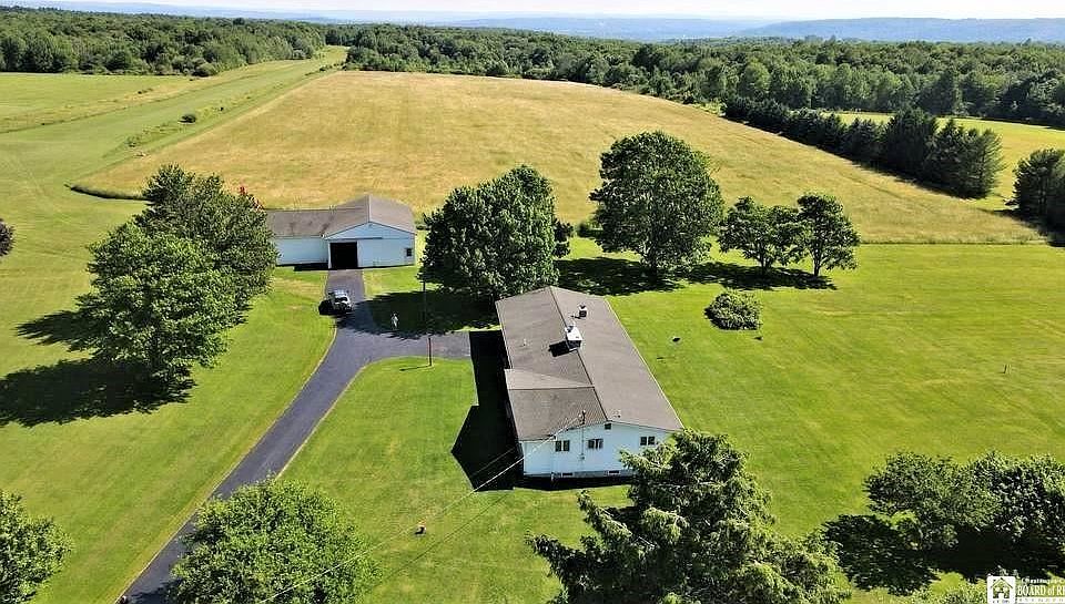 Country Escape - Far away from stress & crowds, this unique multi-purpose property has endless potential for whatever your dreams may be! 120 beautiful acres with awesome scenic countryside views. Combination of open ground and woods (approx. 84 acres) with a creek running through provides potential for recreation, hunting, timber investment, hobby farm, storage, business opportunity.or just a getaway to enjoy the peace & quiet & serenity. Ranch-style 3 bedroom, 2+ bath home has 2 fireplaces, full high & dry basement and attached 2 car garage that has been finished for more living/entertaining space. Whole house generator. Central a/c. FREE GAS. Heated, insulated 1312 sq ft garage would be perfect for car restoration, workshop, warehouse, or the perfect mancave. Potential airstrip/hangar for a pilot. Ideal property for snowbirds, or enjoy the peaceful, rural lifestyle year round. 4 seasons of natural beauty & recreation. Close to 5 lakes, skiing, great fishing, golf, wineries & breweries. Convenient to Jamestown, Buffalo, PA, OH.