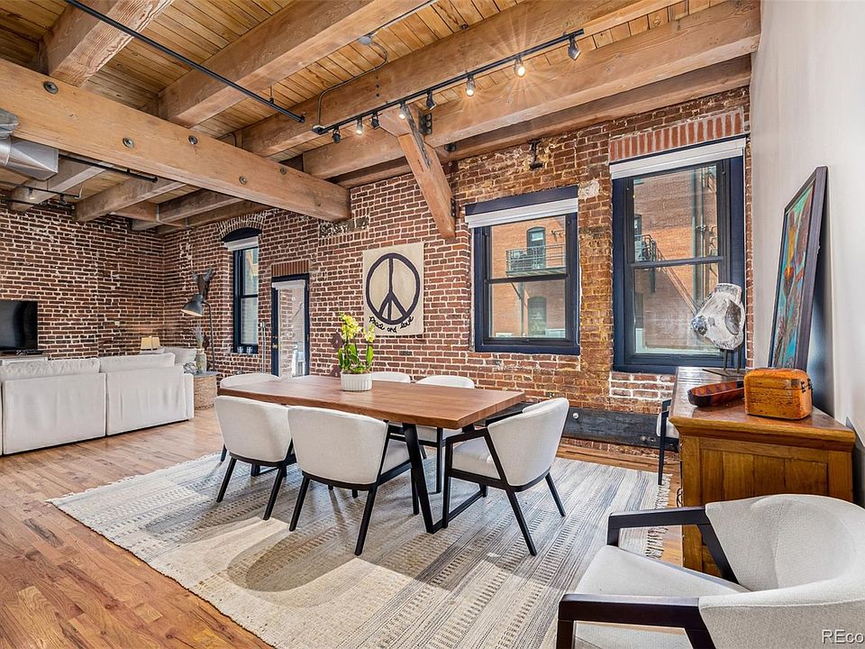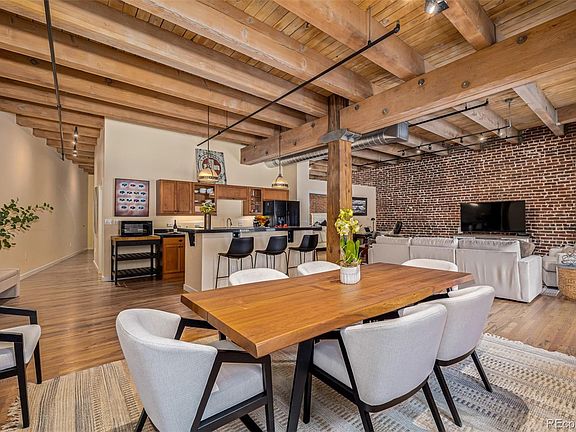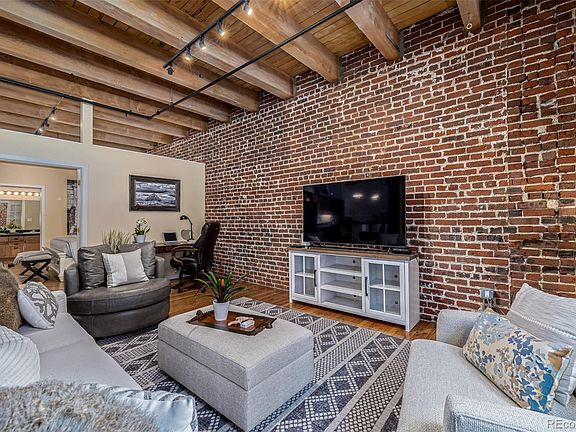 Quintessential Historic Franklin Loft with soaring ceilings and open concept. You can sense the history surrounded by Gorgeous wood beams and brick Walls. Enter a gallery style foyer with amazing wall space for large scale art. Upon entry there is a non-confirming 2nd bedroom, great for guests or a designated office space along with laundry closet and a 3/4 bathroom. Past the entry hall is the great room perfect for formal dining, open kitchen, office desk and space for daily living and entertaining. The perfectly scaled furniture is negotiable. New oversized windows with custom blinds keep out the urban hum of LODO. Enjoy grilling on your own balcony. The large primary bedroom is equipped with walk in closet and 4-piece bathroom with updated walk-in shower. 1 reserved parking space in garage and storage space. Franklin Lofts offers amazing walkability to restaurants and entertainment, 2 blocks to Coors Field and Union Station.