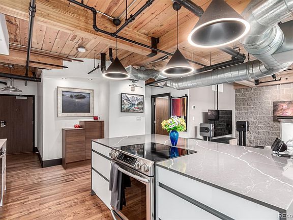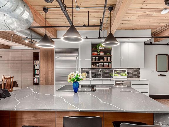 Experience urban living at its finest in this stunning, historic brick and timber penthouse loft in the heart of LoDo. This completely updated two-story residence blends vintage charm with modern luxury, featuring a dramatic two-story living area with a striking three-sided fireplace and expansive windows that flood the space with natural light. The sleek chef’s kitchen boasts a large island bar with a waterfall countertop, glass tile backsplash, pendant lighting, and top-of-the-line stainless steel appliances, including a Sub-Zero refrigerator. Step outside to your private, large, terrace with views of Union Station—perfect for entertaining or relaxing. The main level also includes a stylish guest bath. Upstairs, the spacious primary suite offers a serene retreat with a five-piece bath, walk-in closet, and a large office area. Additional conveniences include an upper-level laundry, two dedicated parking spaces with an EV charger, and a private storage unit. The building has completed several capital improvements in the past several years including replacement of the 5th floor decks in 2017, roof replaced in 2020, and the hallways painted and re-carpeted in 2023! Don’t miss this rare opportunity to own a one-of-a-kind historic loft in one of Denver’s most iconic neighborhoods.