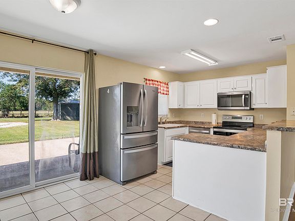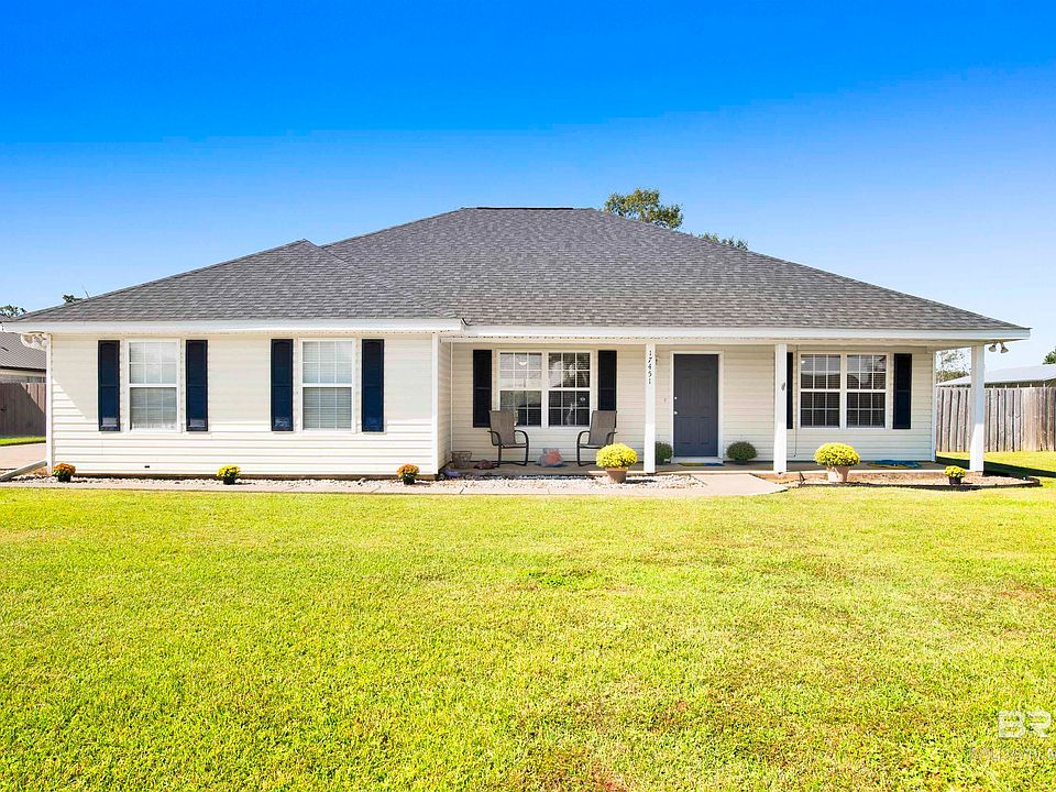 Welcome to Southern Charm in Foley! Discover an inviting sanctuary nestled in the cul-de-sac on a quiet loop in the desirable East View subdivision with no rear neighbors. This elegant home blends timeless character with modern ease, offering the perfect setting for both everyday living and entertaining. The thoughtful front porch façade invites you in—and the expansive half-acre lot provides a serene and private outdoor space ideal for gatherings, children or pets. Enjoy relaxing on the covered back porch watching the cows graze in the pasture behind the home. Inside bright windows in main living areas and generous room proportions bring a sense of openness and air flow, and the oversized master suite provides a comfortable retreat. Floors are wood and tile, no carpet. 3 large bedrooms and 2 full bathrooms in a convenient split bedroom floor plan. The master suite is spacious with an en suite bathroom and a large walk-in closet. The expansive backyard is fully fenced and has room for a pool and includes a storage shed. Fortified Roof installed in 2024, new water heater in 2025. Kitchen appliances were replaced in 2020. All appliances convey. East View subdivision is in a prime rural location: only minutes away from Foley’s conveniences—shopping, dining, entertainment, beaches—yet tucked into a peaceful, low traffic setting in South Baldwin County. The neighborhood is quaint without the typical cookie-cutter look on small lots. Buyer to verify all information during due diligence.