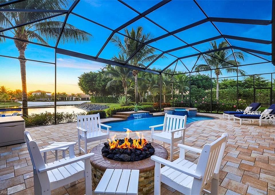 Come home to this luxury Waterfront Villa featuring spacious interiors that seamlessly flow to grand outdoor spaces. Every detail and quality finish blend together harmoniously in this 3 bedroom + den waterfront sanctuary carefully designed for comfort, entertaining and contemporary functionality. Savor spectacular sunsets and lake views to the south and west. Feel surrounded in an elegant yet relaxed environment with a soothing neutral palette. A grand entryway leads to open concept living space appointed with architectural details and a touch of modern essence. Fully outfitted open Chef’s kitchen with breakfast nook, luxurious Master Suite with soaking tub, expansive screened lanai complete with outdoor kitchen, pool, spa, firepit and a private dock with direct access to Miromar’s 700 acres of freshwater lake. The ideal mix of serenity, sophistication and play await you. Miromar Residents enjoy a 5-star resort lifestyle, first-class amenities and choose from a year-round social calendar of events & entertainment. Welcome to Lakefront Paradise.