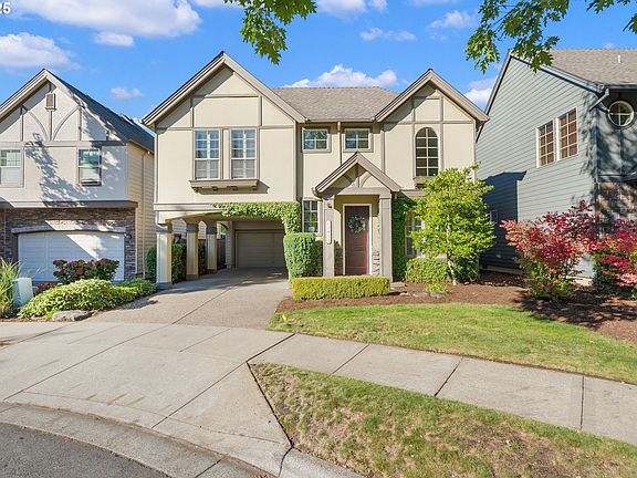 Tucked away on a peaceful cul-de-sac in the coveted Edgewater community, this beautifully remodeled home offers ample parking and backs to a park and the Tualatin River, providing rare privacy and serene natural views. Featuring 4 bedrooms, 2.5 baths, a bonus room, and a main-level office, it’s designed for both comfort and versatility. The open kitchen shines with white cabinetry, slab-quartz countertops, stainless steel appliances, and an expansive island perfect for entertaining. A cozy living room with a gas fireplace flows effortlessly to the private backyard oasis, where mature landscaping & patio create the ideal outdoor retreat. Upstairs, the spacious primary suite offers a peaceful escape with vaulted ceilings and a spa-like bathroom, complemented by well-appointed secondary bedrooms and a flexible bonus space. Enjoy the best of serenity and convenience in this prime Edgewater location, close to parks, trails, schools, and shopping. Added conveniences include extra 7.5’x11.5’ storage room off the garage, central vac, AC & water heater were replaced in 2024.