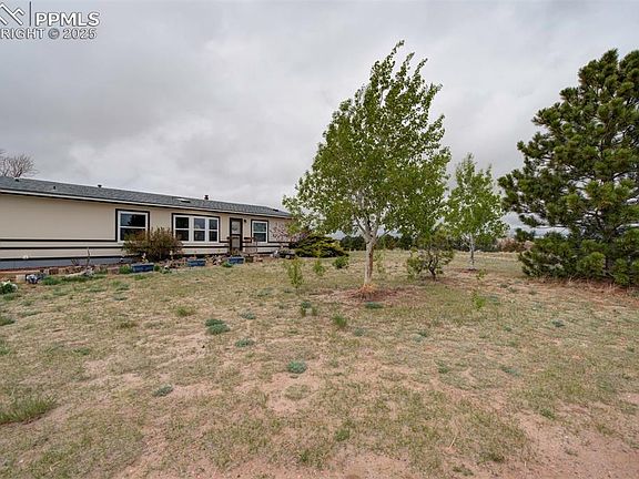 Located in Sage Creek South this manufactured home is situated on a corner lot with views of the Front Range. The home sits towards the corner of this 2.78 acre parcel allowing for plenty of space to expand the existing home or add other buildings. This home needs updating and maintenance, but has great bones to work with. The half bath is actually a three-quarter, but the shower was removed and never replaced. The living room has a vaulted ceiling and a dining area that walks out to a wood deck and small fenced area. The kitchen has a center island, an eating area and a closet with access to the hot water heater. The laundry/mud room is situated off the kitchen and has access to the backyard. All three bedrooms have vaulted ceilings. The detached garage has power and has been used as a workshop for years. The garage has a dirt floor and an overhead door but no opener.