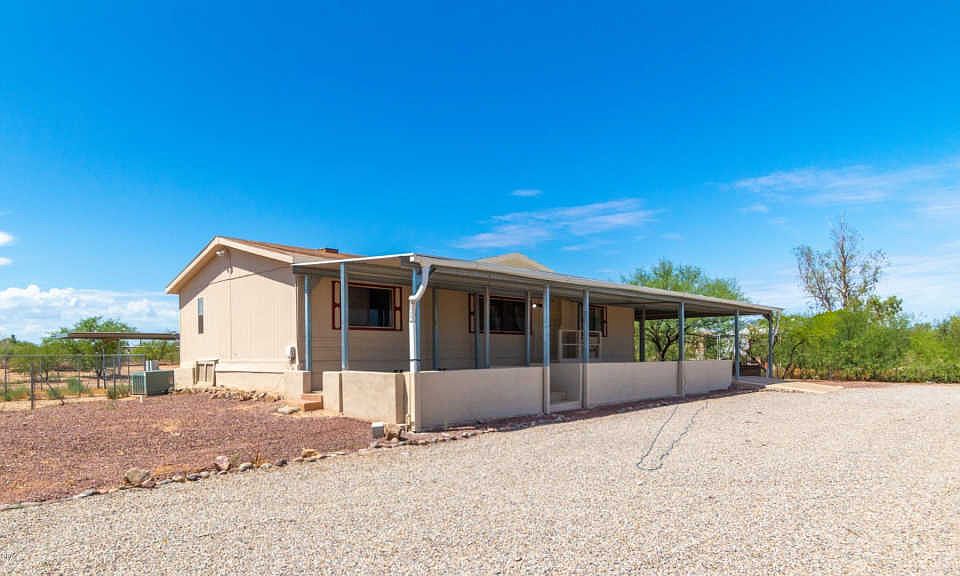 Step inside this fantastic manufactured single family residence that is situated in the amazing city of Marana! Upon entering this home, you are greeted with gorgeous flooring, and tons of natural light throughout! The galley style kitchen boasts lovely laminate countertops, warm wood cabinetry, plant shelving, dual sinks, white appliances and floral wallpaper. The spacious bedrooms offer plenty of room for sleep, study and storage. The backyard is truly a natural desert oasis-there is also a storage shed and a ramada-this backyard offers panoramic mountain views! This home has fresh new exterior paint. Look no further! Book your showing today! This home won't last!