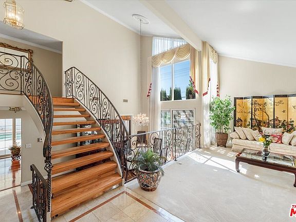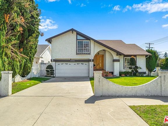 Welcome to 17456 Hiawatha St, a well-maintained traditional pool home in the heart of Granada Hills. Thoughtfully designed for both comfort and functionality, it features a bright living room with large windows that bring in plenty of natural light. The lower level offers a formal dining area, a convenient laundry room, and a guest powder room. The spacious family room, complete with a mirrored wet bar, flows into a full kitchen equipped with oak cabinetry, granite countertops, a double oven, and a countertop stove. Sliding glass doors lead to a generously sized backyard with a covered patio, private pool, a tranquil water feature, plus a dedicated side storage area for outdoor essentials. Upstairs, an elegant iron railing guides you to four bedrooms, including a primary suite with a walk-in closet and private en-suite bath. A secondary hallway bathroom serves the remaining bedrooms. A mix of hardwood flooring and plush carpeting adds warmth throughout the home. With a practical layout and a prime location, near schools, shops, and more, this home is ready for its next chapter!