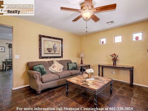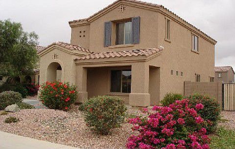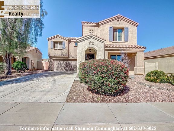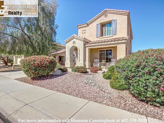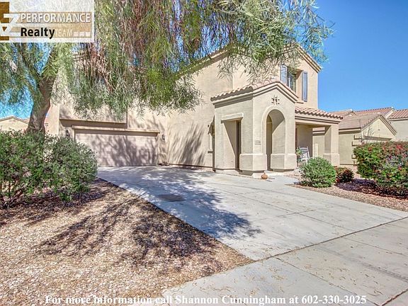 Gorgeous 2 story, with plenty of features that you'll surely love. Boast tile flooring, bright, neutral interior palette and flowing floorplan. Spacious kitchen with built-in pantry, black appliances, granite counters and island with breakfast bar. Upstairs holds sizable bedrooms with plush carpeting. Cozy master retreat with sitting room and en suite featuring double sinks. Oversized backyard with covered patio, pavers and lovely lush landscaping. Extra storage in garage with built in shelves. Conveniently close to AZ 303 Loop. Don't wait, call now for a showing!