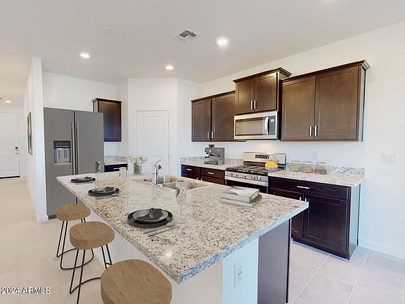 Brand new, energy-efficient home available by Aug 2024! The Carson is a perfect starter home with a private primary suite. Umber cabinets with hardware, dusty white granite countertops, stone-look tile flooring in our Calm package. Flex spaces, covered back patios and more at The Enclave on Olive. Located near the Loop 303, this community provides easy access to the metro Phoenix area. Each energy-efficient home comes standard with features that go beyond helping you save on utility bills—they allow you to live better and breathe easier too.* Each of our homes is built with innovative, energy-efficient features designed to help you enjoy more savings, better health, real comfort and peace of mind.
