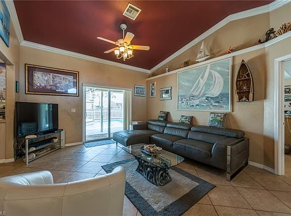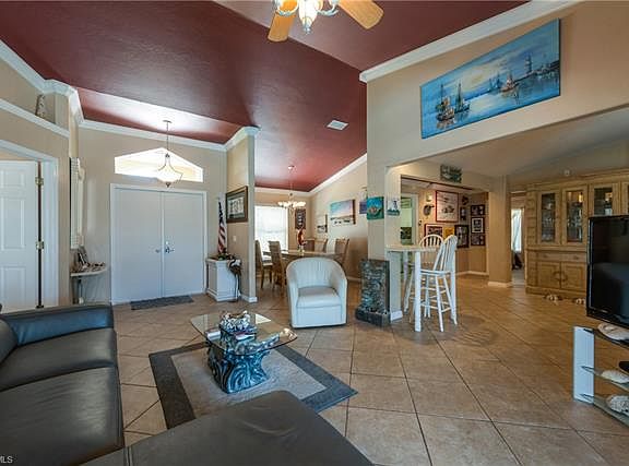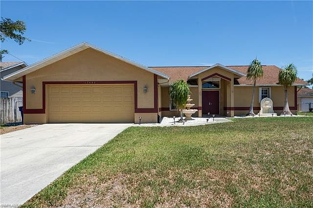 Beautifully maintained 3 bedroom, 2 bath pool home. This home features a split plan with open concept living, dining and kitchen area. There is porcelain tile throughout the home. The lanai and pool are spacious featuring new luxury vinyl planks around the pool deck. All of the pool equipment, including a pool heater, was replaced last year. The roof is approximately 10 years old. The air conditioner was replaced last year. Water softener system 1 year old. The home was re-plumbed with ¾" pipe. The home is hurricane equipped with roll down and accordion shutters, a power generator transfer switch, new hurricane garage door with door opener and new hurricane fiberglass double entry doors. Two beautiful exterior fountains are included. Upgraded window treatments. A riding lawn mower, blower and trimmer are included.
