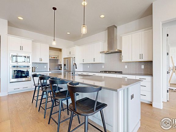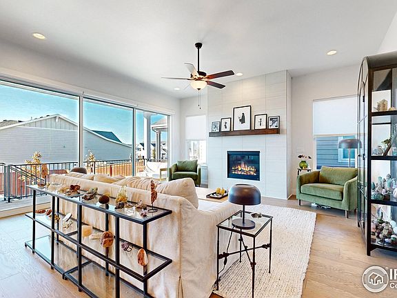 Stunning Ranch in coveted Sugar Hills at Raindance! This beautiful home truly checks every box - style, comfort, and location. Step inside to find a thoughtfully designed floor plan filled with natural light, elegant finishes, and wide-open spaces.The inviting living room features a sleek gas fireplace and a massive 3-panel sliding glass door that opens to the backyard, complete with a remote-controlled shade for easy comfort. Step out onto the generous deck and extended patio with included hot tub and enjoy mountain views-ideal for morning coffee or sunset cocktails. The gourmet kitchen is a showstopper with its enormous island, upgraded appliances, and a $4,000 high-end refrigerator. You'll love the stylish butler's pantry-perfect for entertaining or keeping your main kitchen clutter-free. Engineered hardwood floors flow throughout the main living areas, including the kitchen, dining room, second bedroom, and the luxurious primary suite. The primary bedroom is a true retreat, showcasing a tray ceiling, spa-like ensuite bath, and two spacious walk-in closets. The front bedroom with French doors makes an ideal home office or guest space. Downstairs, the finished basement offers a huge family room, a full bath, a comfortable bedroom, and plenty of storage space-perfect for guests or movie nights. Living in Raindance is like living at a resort. Enjoy access to amazing amenities including restaurants, a spectacular pool and river resort, ski and tubing hill, playgrounds, fruit orchards, and miles of scenic walking trails that connect to the Poudre River Trail. This home isn't just a place to live-it's a lifestyle.