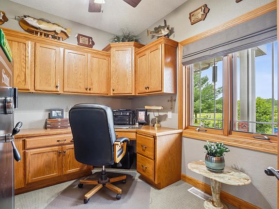This is the one you've been waiting for! Your very own piece of paradise that offers hunting, fishing, ATV trails, hiking, and gardening. Nestled in the heart of this property is a beautiful ranch home. Once you step inside this home you will fall in love with the amazing craftsmanship, and the way this home has been tastefully updated. The living room features a custom built in gas fireplace and a nook with a view of the back yard. Step into the kitchen and enjoy the stunning view of your 35 acre wild flower field. Right off the kitchen is a beautiful dining room with a custom built hutch. The lower level is perfect for entertaining, it features a spacious family room with a fireplace, 2 additional bedrooms, and a full bathroom. Don't worry about a cold basement in the winter this one has in floor heating to keep you cozy on those cold winter days. The home is heated and cooled with a Geo Thermal system. This is arguably one of the most efficient ways to heat and cool your home. The 2 car attached garage features a epoxy floor, drains in the floor, and a heater to keep the chill off in the winter. Also located on this property is a 30x40 insulated shop. This building has heat, air conditioning, and 2- 8'x10' overhead doors. Need more storage? There is a newly built (fall of 2023) 36x40 storage building right next to the shop. This building has 12' ceilings, LED lighting, a 10'x16' overhead door and a concrete floor. There is also the option to make some income on this property. With 35 acres of CRP land you can net nearly 10k a year. This is a turn key property all you need to do is move in!