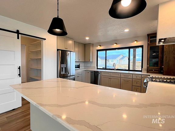 Another quality home by JL Construction! Located within the Lewiston Orchards premiere development, Canyon Crest Estates, this new home will be completed and ready for a summer move in date. Home is located on a corner lot bordering the neighborhood park. House has a 2 car garage plus an oversized rv parking bay / shop, which is a rare find in this neighborhood. You'll love the higher end finishes such as Andersen windows, custom tile showers, solid surface flooring, granite or quartz countertops, stainless steel kitchen appliances and more. Great room & master bedroom both have vaulted ceilings. Wrap around porch with oversized wood beams is both a great place to enjoy the views of the surrounding hills and a beautiful design feature. Builders attention to detail is evident throughout and you'll love the thoughtful features such as a nice sized pass through pantry for ease of access, the large walkin master bathroom shower and extra storage & shelves in the master bathroom. Call for a tour today.