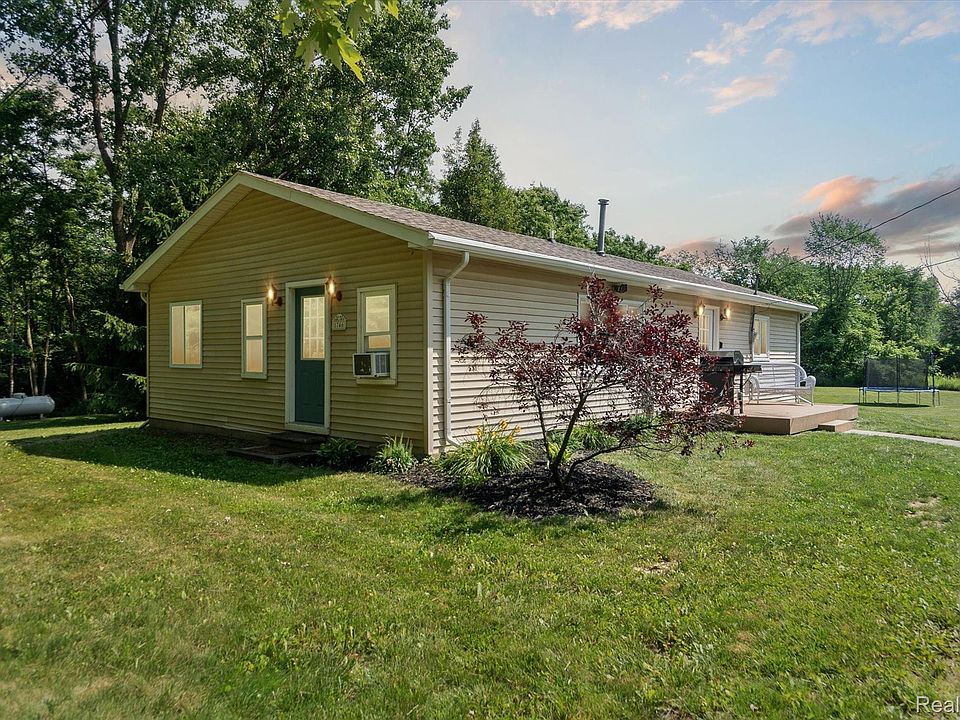 Welcome home to this adorable ranch charmer conveniently located down secluded road off Latson Rd. Just a short drive to highways, restaurants & shopping. Home sits on 1 acre with tons of room to store your boat or RV. 2 sheds on the property offer extra storage and very clean/usable Michigan basement with concrete floor & hidden entry door built into the quaint deck outside of the home (perfect for grilling and enjoying your secluded view). Head on in to the spacious and updated kitchen with vinyl wood flooring and cherry cabinets. Home has 3 great sized bedrooms & 1 full bathroom with tiled tub/shower. Large living room has adjoining office or playroom. Deep laundry closet with extra storage for baskets, detergent, etc. Home is on propane and has very efficient window A/C unit to keep you cool during the summer heat. Don’t wait! This gem will not last! **Offers due by Monday July 17th by noon**