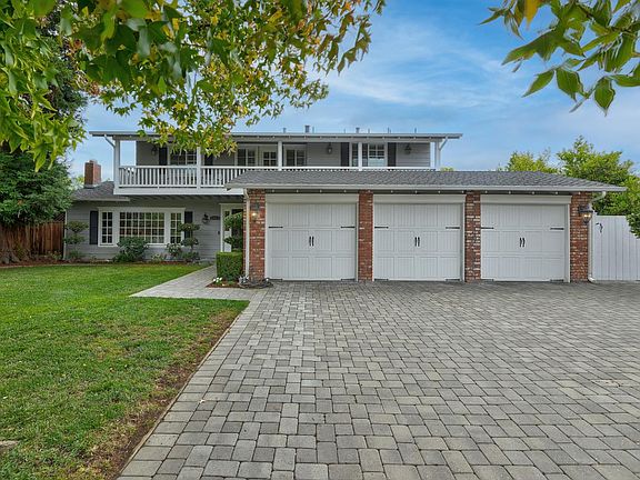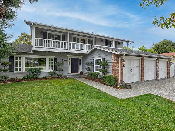 Boasting a picture-perfect facade that would make the housewives of Wisteria Land weep, this 4-bed 3-bath beauty is brimming w/ curb appeal. Set on a cul-de-sac, the 2-story home is flooded w/ light, lined in hardwoods and decked in molding. Fully remodeled in 2007, the homes living room sets the stage for gatherings, outfitted w/ a fireplace. An open concept dining room has fantastic indoor/outdoor flow, furnished w/ French doors. Fit for a Michelin-star chef, a striking kitchen w/ Viking range, GE appliances and custom cabinetry enlists a granite island. A pinot-friendly family room features a 100+ wine storage, granite bar, fireplace, and surround sound. At the ready when guests retire, a 1st floor bedroom features a built-in bed and desk. Equipped w/ upstairs laundry, the primary suite affords walk-in closets and a spa-like bath w/ travertine/limestone/marble. Blocks to schools and fwys, this Los Altos gem features a sprawling backyard, solar panels and 3-car garage w/ EV charger.
