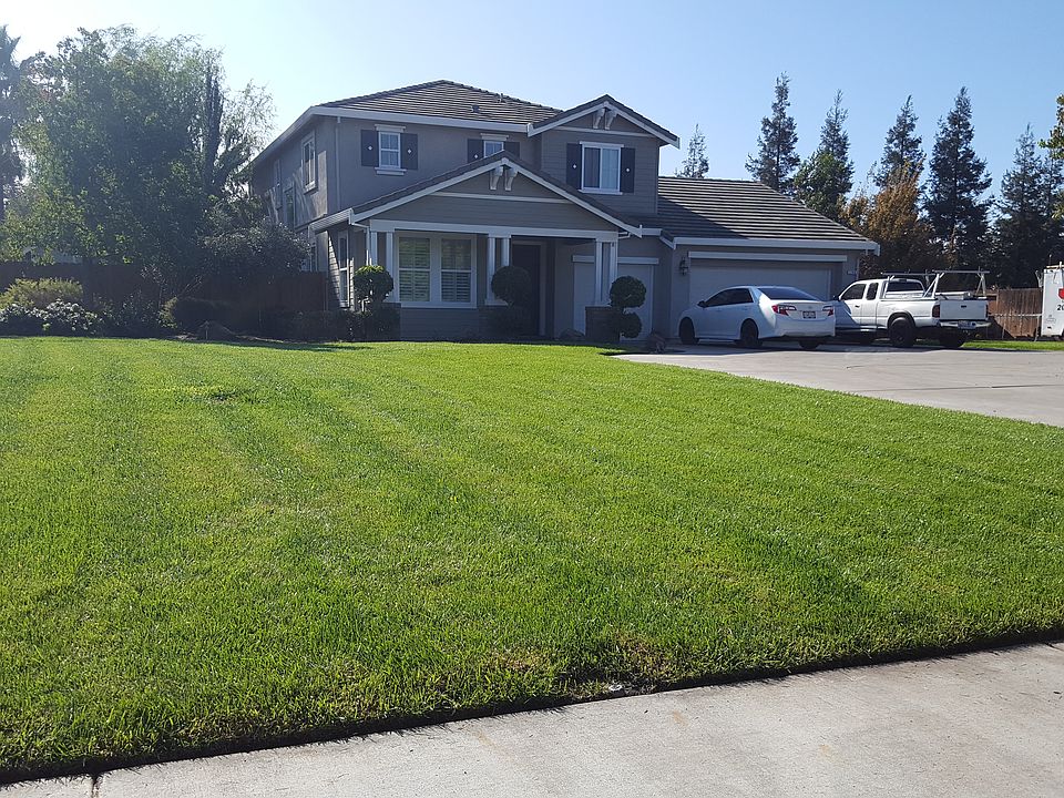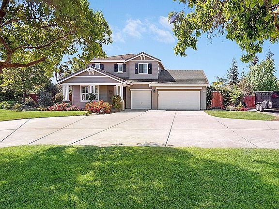 Your Oasis awaits! This stunning newly painted 4 bedroom 3 bath home on 17,063 sq. ft lot has it all. Starting in the backyard with the lovely in ground pool maintained by a $12k wifi auto pool system, whirlpool gold hook ups, covered patio , lush greenscape, automatic sprinkler system in front and back, cool storage shed to stay. The front of the home has a large yard, U shaped driveway with plenty of space for cars, trucks, boats, RV's and also a 3 car garage. Inside this lovely home on the first floor the private office has a slider leading to back yard. Travertine tile flooring, a wonderful open kitchen, formal dining area, formal living, and full bathroom downstairs. Upstairs there is additional storage, 3 bedrooms with new ceiling fans, blinds and paint and a master bedroom that boasts 1 yr young Shiplap, a master bath with a custom Carrera marble tile floor in deluxe shower. LED lights throughout master walk in closet. Just minutes from retail, schools and highway 99.