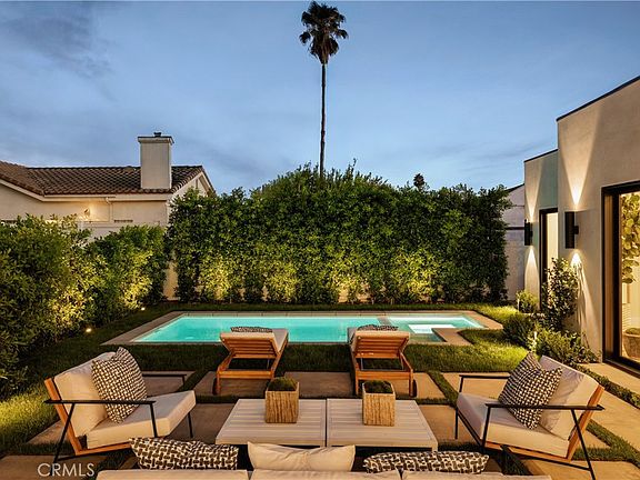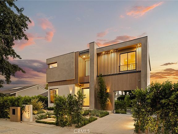 Nestled in prime Encino, this newly built contemporary-modern estate, crafted by a luxury builder with a legacy since 1993 offers 5 bedrooms, 5.5 bathrooms, and 3,143 sq ft of refined living space on more than 5,500 sq ft of private grounds. Thoughtfully reimagined, the residence seamlessly blends sophisticated design with state-of-the-art technology. Its striking exterior is enhanced by curated landscaping, highlighted by a grand olive tree anchoring the front yard. Inside, the expansive layout impresses with both an entertainer's living room and a separate family room. A 72” gas fireplace finished in porcelain and Tuscany plaster anchors the space, complemented by a built-in TV. The chef’s kitchen is a showpiece of style and function, featuring a grand island and peninsula, custom cabinetry, a full-height pantry, and top-tier appliances from Wolf, Signature, and Fisher & Paykel. Sleek porcelain counters, a matching backsplash, and an under mount sink bring the design together with effortless elegance. The primary suite is a luxurious retreat with a balcony and a custom walk-in closet with built-ins, LED mirrors, and a dressing table. Windows with electric tinting technology provide instant privacy at the touch of a button. Spa-like bathrooms elevate the everyday with wood vanities, textured porcelain showers, and a refined mix of matte black and brushed gold finishes. Towering ficus hedges ensure privacy, while star jasmine, boxwood, and bamboo accents create a serene backdrop. The backyard is an entertainer’s dream, featuring a white pebble pool and spa with full automation, cascading deck and spa jets. Thoughtful details - including app-controlled Sonos speakers, a surveillance system, and ambient landscape lighting - complete the outdoor experience. Additional highlights include a home office, wine cellar, full laundry with Samsung washer/dryer, and three installed TVs. The residence is fully equipped with modern essentials such as Lutron smart lighting, Nest thermostats, dual tankless water heaters, an automatic sprinkler system, and ADT security with motion and moisture sensors. Perfectly situated in prime Encino with easy access to the 101 and 405, Ventura Boulevard’s dining and boutiques, The Village and Topanga Westfield Mall, Lake Balboa, and Balboa Golf Course, this home offers the ultimate blend of luxury, comfort, and convenience - crafted for elegant entertaining and everyday living.