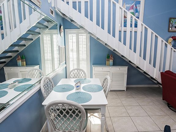 CONDO AND GOLF CART! If you are searching for the ideal beach getaway or full time residence look no further! Horizon South is a gated community offering a wealth of amenities and a dedicated walkway across the road to the beach This turn-key condo exudes a warm coastal vibe and is perfect for family use or rental income. Just bring your clothes and get ready to enjoy! The condo features two queen beds downstairs, a king upstairs, and a sleeper sofa in the living room. All windows and doors have been replaced for energy efficiency, and you'll love the stylish plantation shutters and the insert blinds in the front doors. Storage is plentiful with three walk-in closets. The kitchen boasts newer countertops and a modern backsplash. Enjoy the spacious outdoor patio, enclosed with a privacy fence and featuring cut-out windows. An extra storage closet is available on the patio, and the recently added cool decking completes the outdoor space. Additionally, a GOLF CART is included with the condo. For your enjoyment, Horizon South offers four different pools with three just steps away from the condo. You'll also find a putt-putt course, shuffleboard, tennis/pickleball courts, a hot tub, and more. If you're looking to stay even more active, there's a fitness area and game room available or just enjoy a relaxing walk around the area. Internet is included in the HOA. Don't miss out on this incredible opportunity! Contact your favorite realtor for more details today - you won't be disappointed. HOA includes Internet, Water, Sewage, and Garbage.