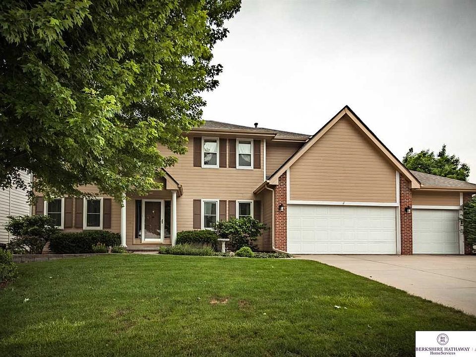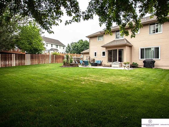 Beautiful 2-sty w/ updates in Dickinsons Landing! Large family areas make this home great for entertaining! Main floor office or formal dining room. 4 bedrooms up, with two non-conforming beds down, plus a wet bar. Fresh paint throughout and newer light fixtures. Enjoy the beautiful fenced backyard with mature trees and gorgeous patio, perfect for backyard parties! Close to the park and HyVee! Walk to Lake Zorinsky, Millard West and Rohwer Elementary.
