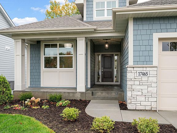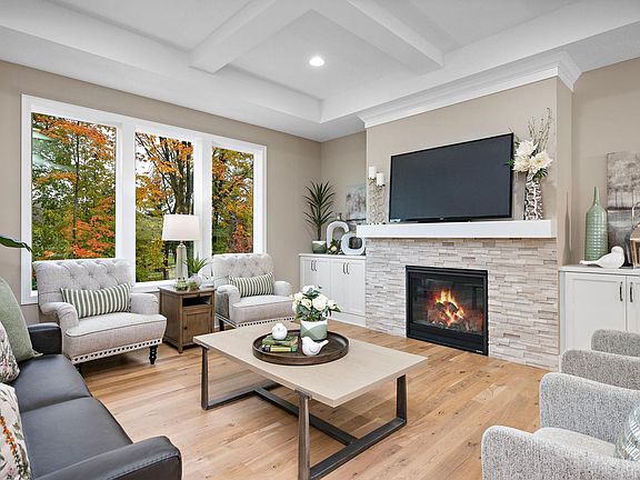 Our "Hawthorn" model is a 3 BR, 3 BA, 3-car tandem garage with a private scenic views. Most of the main level has real white oak hardwood floors, vaults & gorgeous trim detailing. Spacious gourmet kitchen w/stunning quartz countertops & sliding barn door to the walk-in pantry. Beautiful Dining room with wainscoting is open to the great room showcasing built-ins on either side of the stone fireplace. Owners' retreat offers heated bathroom floors, showers w/ bench & huge Wi closet. Finished lower-level with Epoxy Flooring. Don't miss your opportunity to live in this attractive neighborhood that offers woods, walking trails, wetlands, and a brand new Plymouth Park. Just a few homesites left to choose from, before this neighborhood is sold out. HOA for snow & lawn care.