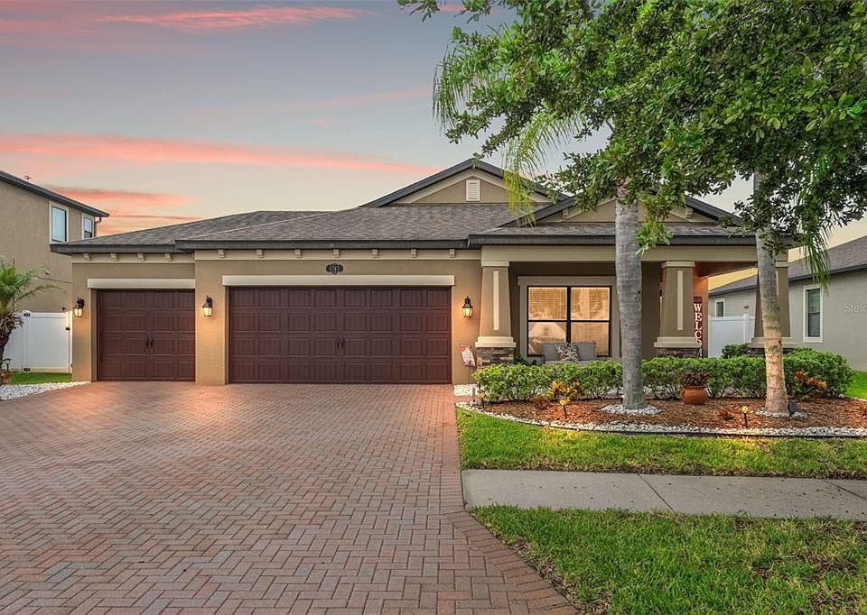 Welcome to your dream home in the highly sought-after Trinity Preserve neighborhood! This stunning property offers unmatched luxury and convenience, starting with a beautiful brick paver driveway and a three-car garage. The home is freshly updated with all-new paint throughout, creating a bright and inviting atmosphere. At the heart of the home, the renovated kitchen features sleek quartz countertops, a stylish new backsplash, and plenty of space to entertain and create culinary masterpieces. Adjacent to the kitchen is a large bonus room, offering endless possibilities—it could serve as a home office, playroom, gym, or even a media room to suit your needs. The spacious primary bedroom is your personal retreat, complete with a completely renovated master bathroom featuring a luxury shower that will make every day feel like a spa day. The secondary bathroom also showcases modern elegance with quartz countertops, ensuring style and comfort throughout the home. Step outside to your private fenced-in yard and enjoy breathtaking pond views—perfect for relaxing or hosting gatherings in a serene setting. Located in a gated community with no CDD fees and in a top-rated school district, this home is ideal for families looking for both luxury and peace of mind. Don't miss the opportunity to live in this exquisite home in a premier location. Schedule your tour today and discover all the amazing features this property has to offer!