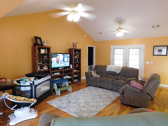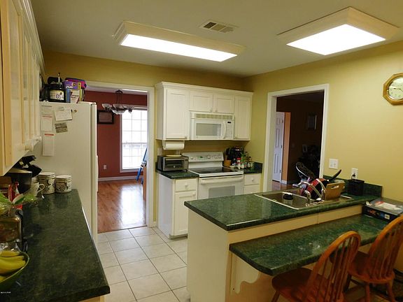 Nice country setting, not far from town with this 3/2 brick home on 3.98 acres. Home has kitchen with breakfast bar and nook, tile flooring. Entry, dining and living areas have oak hardwood flooring. Living room has french doors leading to screened in patio. Split floor plan has spacious master bedroom with walk in closet and master bath with double vanity, separate shower and whirlpool tub. 2 additional bedrooms and hall bath. Attached double carport. Covered front porch. 12x10 outbuilding and a 16x12 partially enclosed outbuilding.