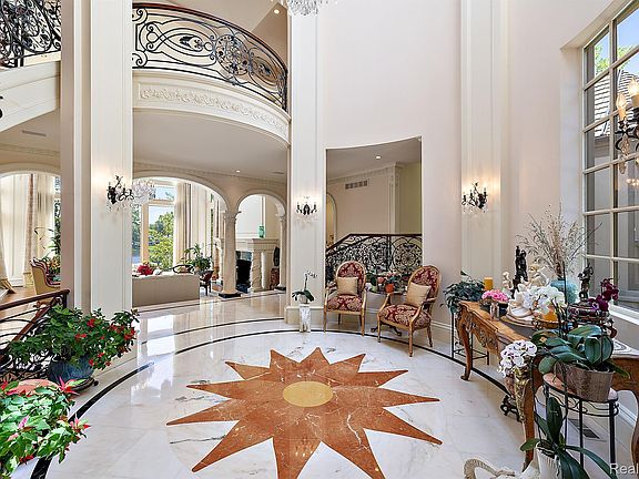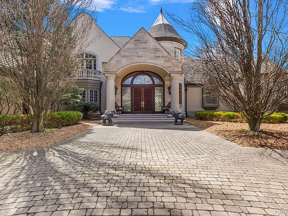 Welcome to an unparalleled opportunity to own a prestigious waterfront estate in the exclusive Heron Bay Gated Community of Bloomfield Hills. This elegant masterpiece spans over 10,000 square feet, offering a perfect blend of architectural brilliance and sophisticated design, making it the epitome of luxury living. As you step inside, you are greeted by grand spaces and exquisite detailing featuring custom woodwork and intricate plaster craftsmanship. The gourmet kitchen is a chef's dream, featuring top-of-the-line stainless steel appliances, custom cabinetry, and sleek countertops. With ample storage, an inviting island with seating, and a sunlit breakfast nook, this kitchen is functional and beautiful. Conveniently located off the kitchen are the main-level laundry room, a powder room, and an expansive 4-car garage. Additionally, behind the kitchen, there is a full bedroom suite, providing an ideal space for guests or extended family. This estate is designed for ultimate comfort and convenience, featuring an elevator that services all levels, six opulent bedroom suites, 8 bathrooms, and 4 half baths. The first-floor primary suite is a true sanctuary, offering dual closets, including a breathtaking two-story closet for her, an oversized luxurious bath with a soaking tub and walk-in steam shower, and a private balcony with stunning waterfront views. Upstairs, three additional bedroom suites provide spacious layouts, generous closet space, high-end finishes, and an expansive living room. One serves as a secondary primary suite, perfect for guests or family. The exquisitely finished lower level is an entertainer's dream, boasting a lavish entertainment area, a second kitchen, an additional bedroom suite, an indoor pool surrounded by travertine floors, and a stunning jacuzzi. From here, you can access the beautifully landscaped private backyard, which features a private dock and abundant relaxation and entertainment space. With Bloomfield's award-winning schools and a variety of local amenities nearby, Welcome Home!