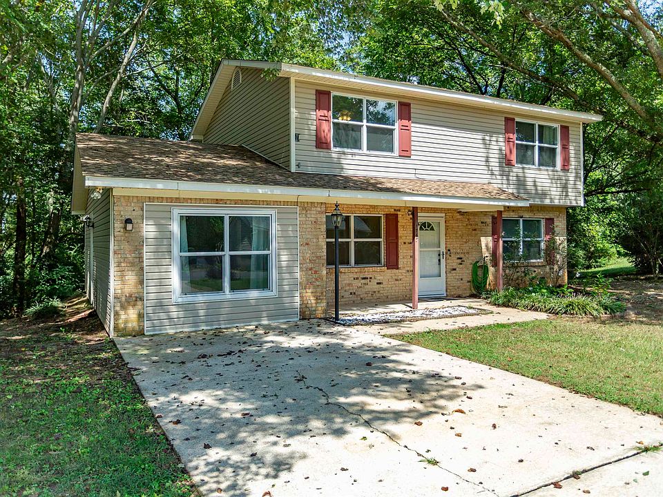 Open House August 17 from 2-4 Welcome to wonderful home on a flat lot. Great space, main level boast large den, bonus room great for an office or kids room, half bath has pet bath and drain in the floor, upstairs are 3 bedrooms , updated master bath with beautiful shower. There is deck in backyard overlooking wooded area and Great storage building for all the extra things you need stored away.