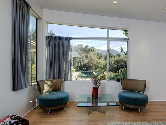 Here is a rare opportunity to own a Mid-century masterpiece in Ojai's desirable East End. This immaculately restored Kazumi Adachi designed home could not be more stunning ~ elegant and luxurious with high end touches throughout, while exuding functionality and a sense of ease. You are greeted by a marvelous quiet, complemented by sounds of nature and incredible mountain views, making this the perfect hideaway. The 3 bedroom, 3 bath home and detached studio is situated around a salt water pool & spa with an outdoor living space complete with fireplace and full kitchen, lending itself to indoor/outdoor living at its finest. The half-acre property has been thoughtfully landscaped with drought tolerant Australian natives and includes avocado, orange, lemon, plum, fig and olive trees. Whether you choose to make it your weekend escape or your forever home, this one of a kind property cannot be missed.