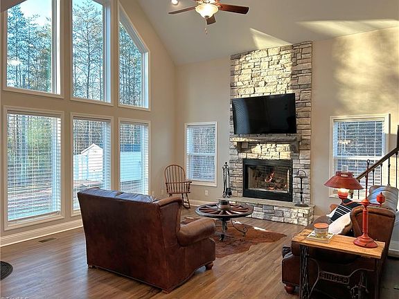 Beautiful one year old home with plenty of room to roam. Primary bedroom and laundry on the main level for easy living. Open concept living with soaring great room featuring a rock fireplace and wall of windows. Additional two bedrooms and full bath upstairs. Wildlife abounds on this parcel that sits within a short drive to Hanging Rock State Park and the Sauratown Mountains. Take in all nature has to offer as you travel the path from the house through the property ending at a bold creek along the back of the property. Shed and large dog house that could be converted for chickens convey. Power, water and septic hook ups for an RV are already in place. Home is also wired for a generator. This property checks all the boxes, book your showing today!