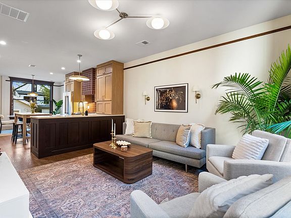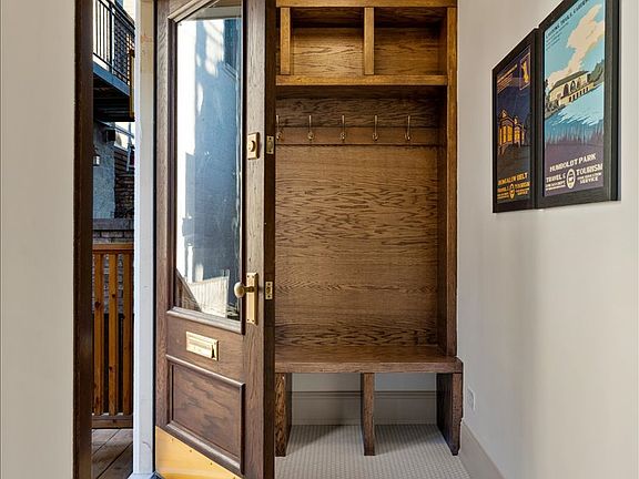 Meticulously designed and completely private rear single family home showcases tons of reclaimed vintage character, incredible natural light and soaring ceilings throughout. This 3BD/3BA home was originally built at the front of the lot as the main home but was moved back and became a "coach house" many years later. Freshly renovated and spanning three levels, it features solid oak flooring, custom oak built-ins and beams, vintage stained doors and trim, vintage hardware and lighting and at the same time provides a fully gut rehabbed core and top tier designer bathrooms and kitchen. At the front of the home, there is a proper entryway with a beautiful built-in providing excellent storage and it leads to the open concept main level that lives like a true single family home. The charming living area is one of several living spaces in the home and accommodates large furniture. The kitchen features oak cabinetry, top of the line Thermador appliances, Anne Sacks by Studio McGee tile backsplash, a massive walk-in pantry, a large island and more. The dining area is also incredibly charming and bright. The main level is complete with a sizable bedroom with great closet space and an attached full bathroom. Nearly the entire second level is dedicated to the primary suite with a long hall of built-in armoire closets with drawers and shelving, a large storage closet, an oversized spa-like marble bathroom and a huge bedroom with beautiful wall moldings, sconce lighting, oak beams and skylights making the whole level incredibly bright. Just outside of the primary suite is a convenient sitting area perfect as a reading nook or work from home area. The lower level of the home offers another bedroom that can accommodate a king bed and dressers, a full bathroom, a cozy family room with wall paneling throughout, a large utility/laundry/bike room and a huge storage area. A charming paver courtyard provides wonderful outdoor space! Unbeatable Roscoe Village location!