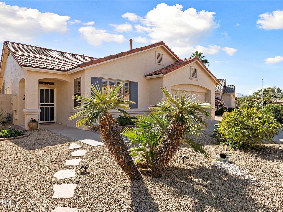 Welcome to this beautifully maintained single-story home featuring an inviting open floor plan and numerous updates throughout. Enjoy vaulted ceilings, neutral tile flooring, and abundant natural light. The kitchen offers granite countertops, stainless steel appliances, and custom gray cabinetry. Recent upgrades include a new HVAC system (May 2020), roof (Oct 2018), water heater (Oct 2023), garage door opener (May 2023), gas range and microwave (Aug 2018), and upgraded bathrooms (July 2021). Relax in the peaceful primary suite or entertain in the private backyard oasis with a screened-in patio, mature landscaping, and low-maintenance desert design.