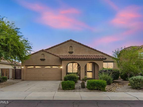 Welcome home to Desert Sage Drive, where Arizona evenings glow with pink skies. Nestled in the Estrella Mountain Foothills, this beautiful home features an open floor plan with soaring ceilings, a gourmet granite kitchen, and a spacious primary suite with a spa-like bath. The backyard is made for year-round enjoyment with a covered patio, artificial turf, and a sparkling heated pool. Built in bluetooth speakers throughout the home. Enjoy mountain views, lakes, hiking trails and a Jack Nicklaus-designed golf course nearby. The perfect blend of comfort, luxury, and lifestyle awaits.