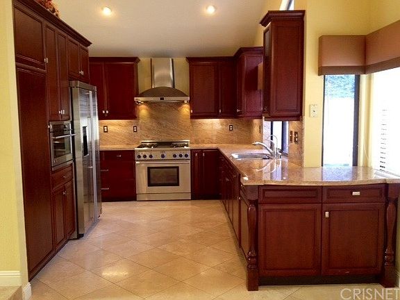 Beautifully remodeled 2-story Granada hills home for Lease! Enter the home through the double doors into a light and bright living room and dining room featuring newer wood-like flooring and custom blinds. The Chef's kitchen has stainless steel appliances, Thermadore range and built-in microwave/convection oven. The kitchen opens up to a breakfast area. The family room features a gas fireplace and built-in cabinets. Off the family room is a bedroom/office next to a full bathroom, pantry and laundry room. Upstairs is a master bedroom with en suite bathroom and walk-in closet. There are two other bedrooms with a shared bathroom. The grassy backyard includes a fountain, built-in barbeque area and a portable awning. Other features include HVAC with filtration and 3-car garage. Close to O'Melveny Park and Van Gogh Elementary.
