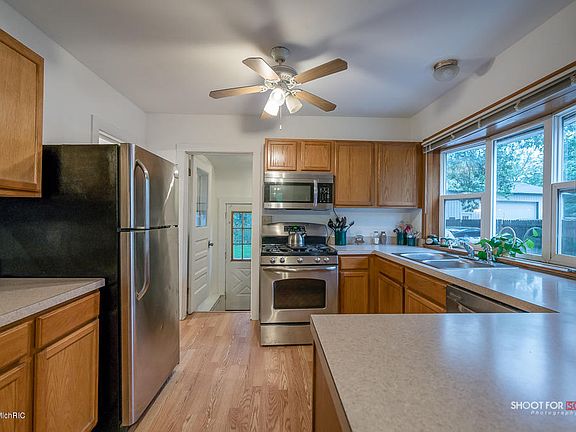 This 4 bedroom, 2 full bathroom home has a lot to offer! New Vinyl siding and new roof was done in the past 3 years. Home has many energy efficient features. The basement has a family room, full bathroom, bedroom with a separate outside entrance - would be great for a combined living situation! Oak cabinets with newer appliances grace the kitchen. New cool tile shower enhances the main floor bathroom. The yard has nice wooded ravine views, paved driveway and big 2 stall detached garage.Close to highway for easy commute. Close to Lake Michigan, Spring Lake, and Parks for playing!
